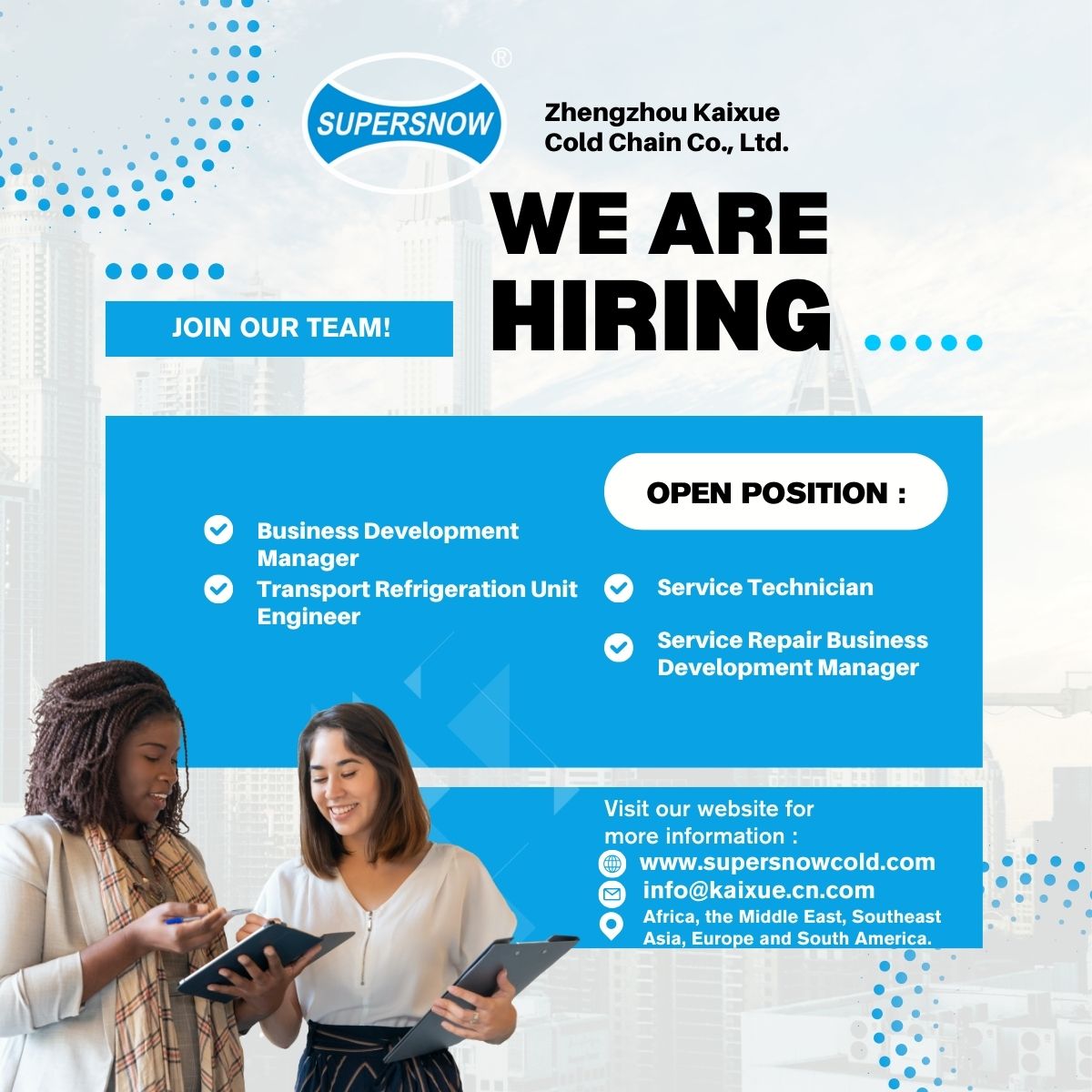 Send your CV to Supersnow's email.